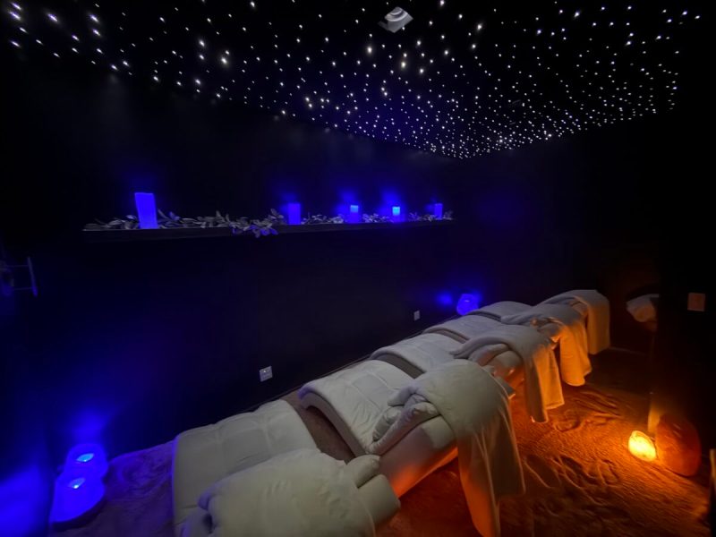 I headed to North Richland Hills to Salti Salt Spa, a nurse practitioner-run med spa that made the Fort Worth Star-Telegram’s favorites list last year. Booking in advance online is encouraged, but I risked it on a weekday afternoon and arrived unannounced. There are three different rooms: a large room that accommodates five people, a smaller one for two people, and a kids’ playroom. Due to a previous booking of the smaller room, I ended up in the large one, a starlit room with leather loungers and soft blankets surrounded in a sea of pink salt. Salt particles are blown into the air from a machine on the side of the room. Soothing music played, and I had 40 minutes to sleep, think, or really do whatever.