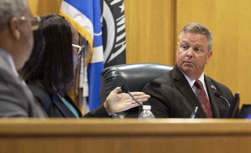 Tuesday’s meeting was chaotic at times. Several members of the public were thrown out after calling O’Hare, or others, racist. The court’s rules of decorum ban personal attacks, O’Hare said.