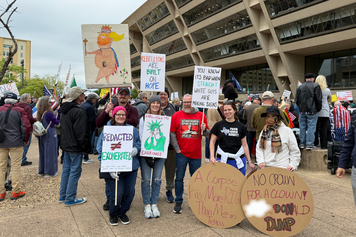 Let’s take a look at some of the best signs we saw at “No Kings” rallies this weekend.