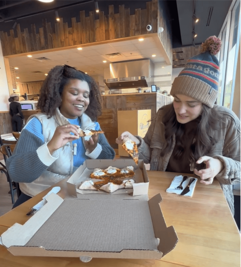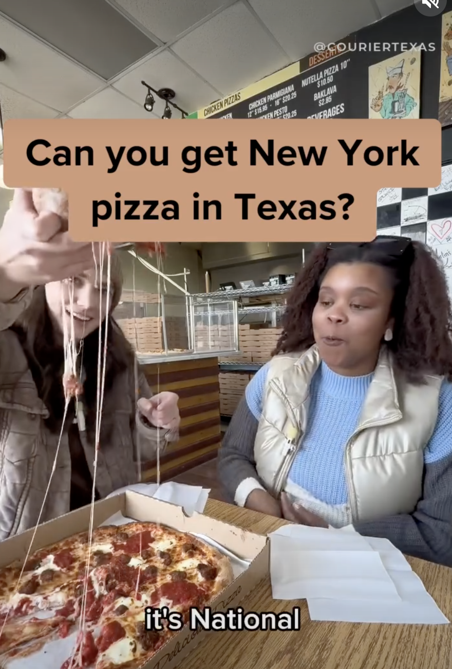 First, there was Kabylo’s Pizza in North Richland Hills. This might be the closest North Texans are getting to New York City pizza. The subway-tiled shop had quite a few delicious-sounding combos, but we opted for the chicken parmesan pizza and were not disappointed. Our meal even included an epic cheese pull.