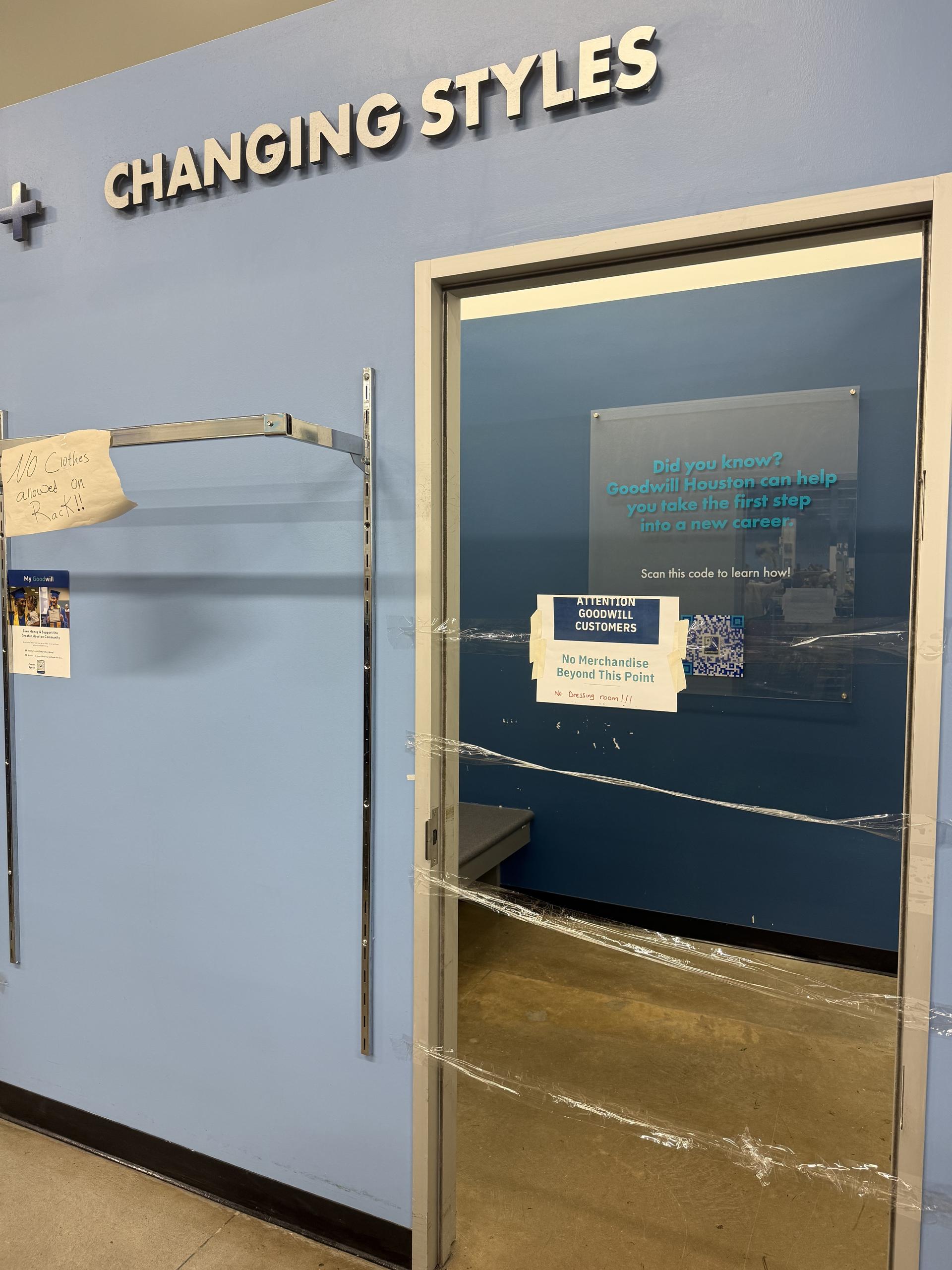 At other locations, the fitting rooms have already been painted over and covered up. Goodwill Houston has not released a statement on why the change occurred.